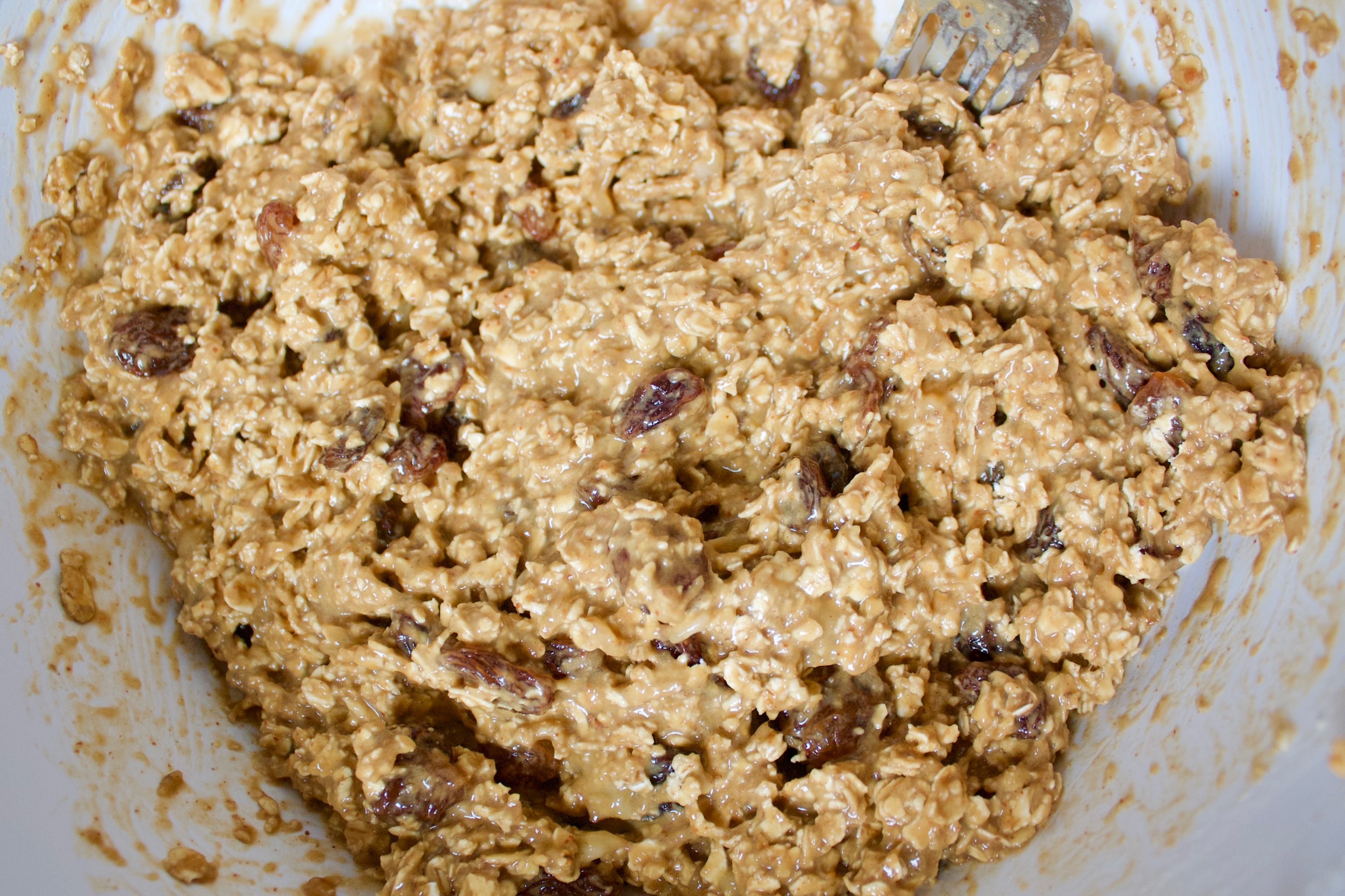 Mix in all wet ingredients and then dry until well combined. Add to a baking dish.