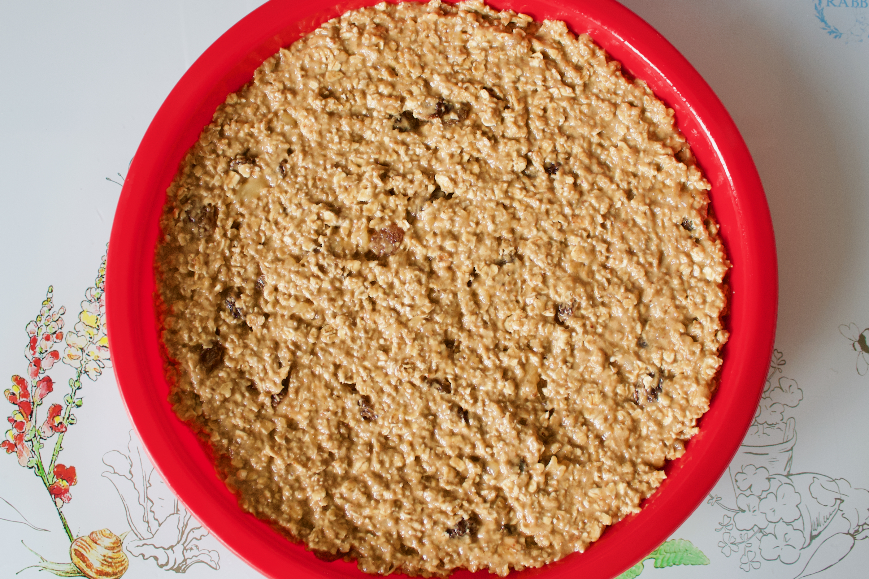 * A combination of oat flour (I like 100g) and oats (50g) gives a more cake-like texture to the flapjacks. I make my own oat flour by grinding up oats in a coffee grinder.