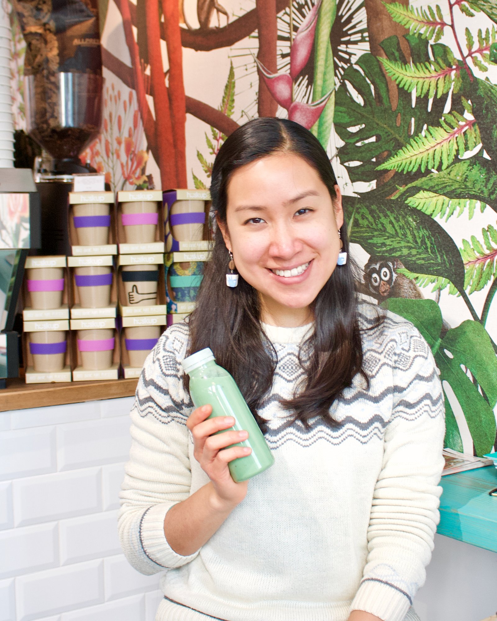 - The first order of business was to select a green drink to try, and I was immediately drawn to the beautiful teal green colour of this green goodness smoothie. Made with avocado, banana, spirulina, and coconut mylk, it was deliciously creamy and full of nutrients.