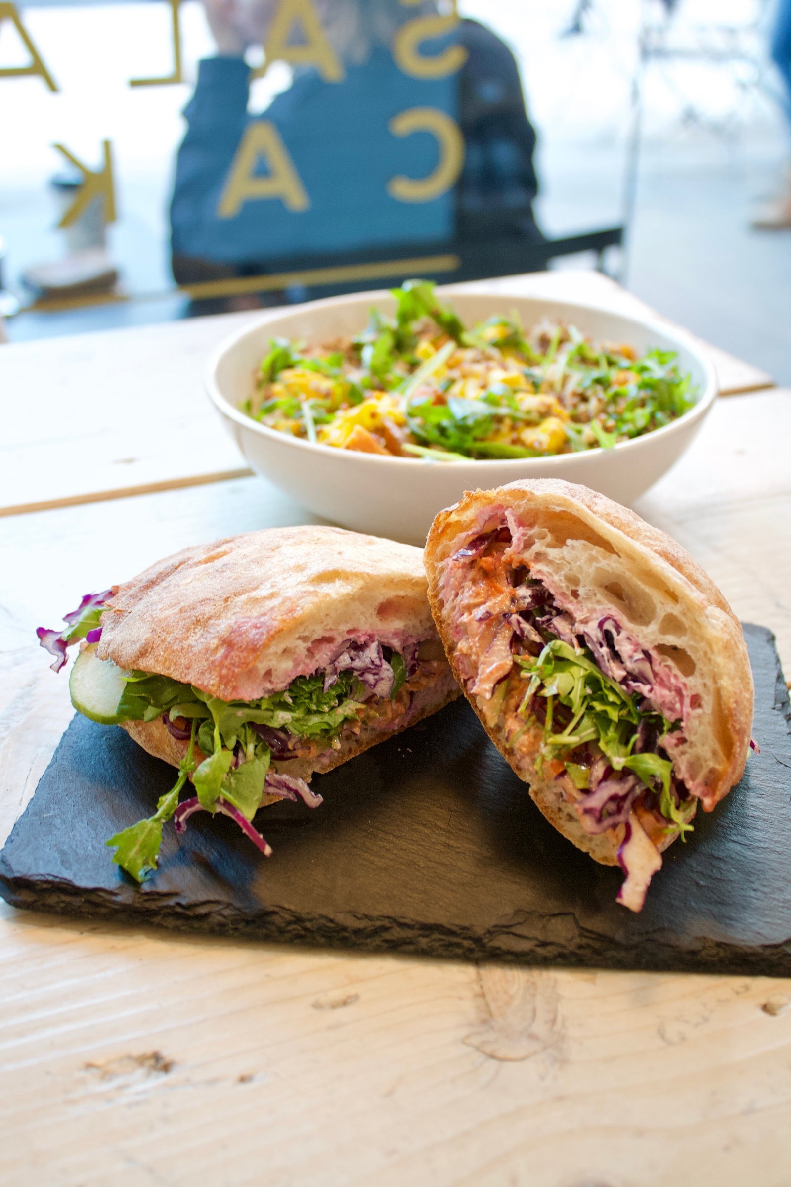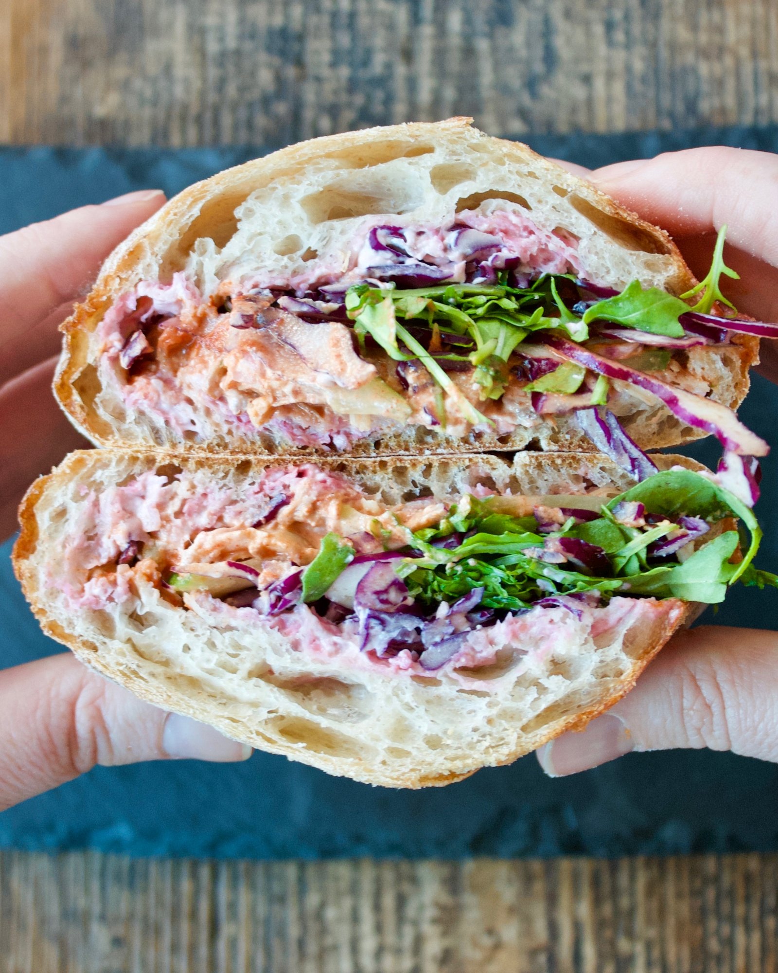 - This sandwich was just as epic as it looked! We decided not to toast it, given that it had some fresh salad and veggies inside. I think we made the right decision. The BBQ jackfruit was so flavourful, the red cabbage and cucumber added a delightful crunch, and the beetroot mayo and rocket added extra hints of sharpness and flavour.