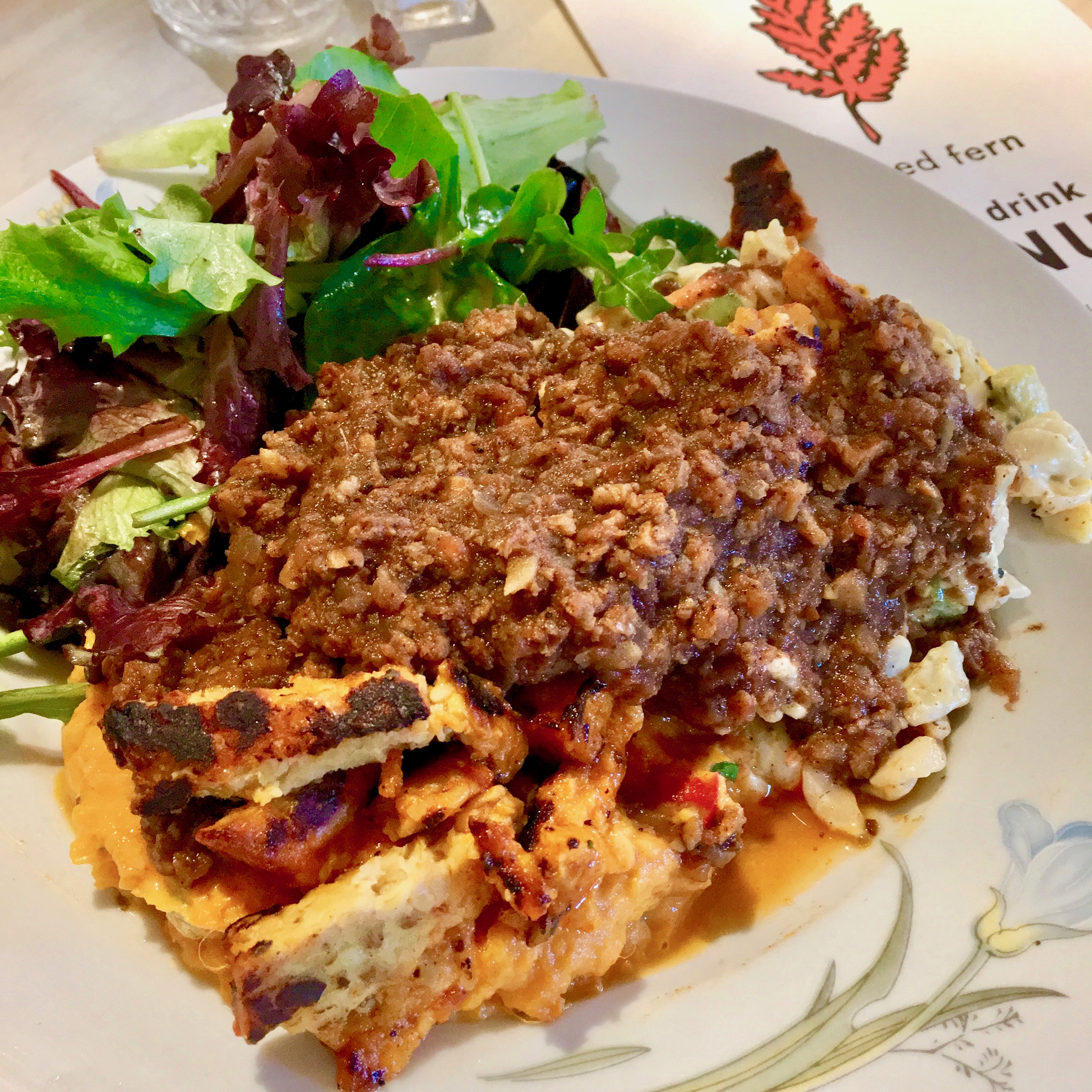 I ended my (unofficial) Rochester vegan tour by hitting up The Red Fern with Rachel. After perusing the menu, I decided to get the most Rochester-sounding item on the menu: the ‘Compost Plate’ ($12.50), aka a vegan version of the Rochester Garbage Plate.