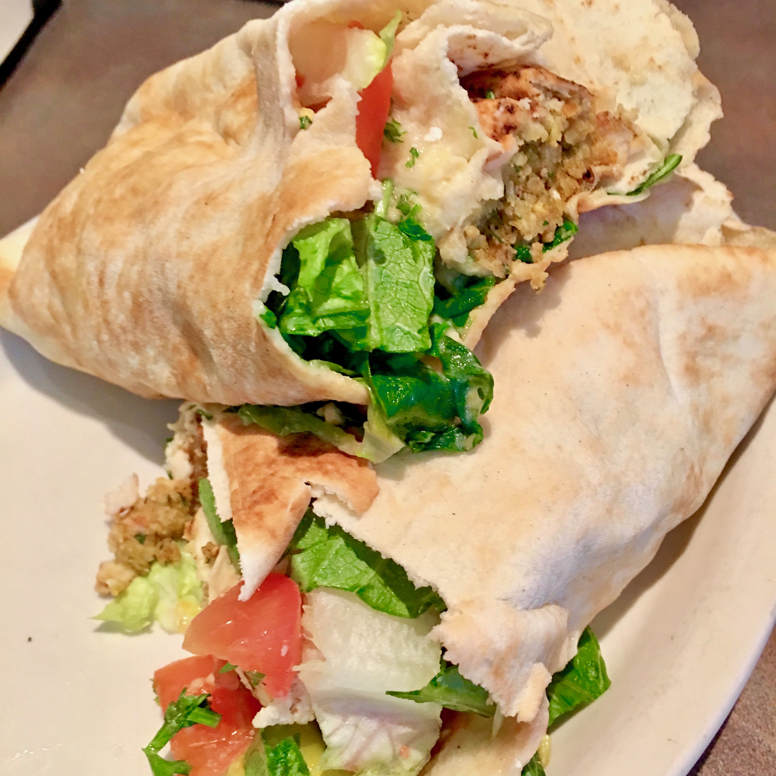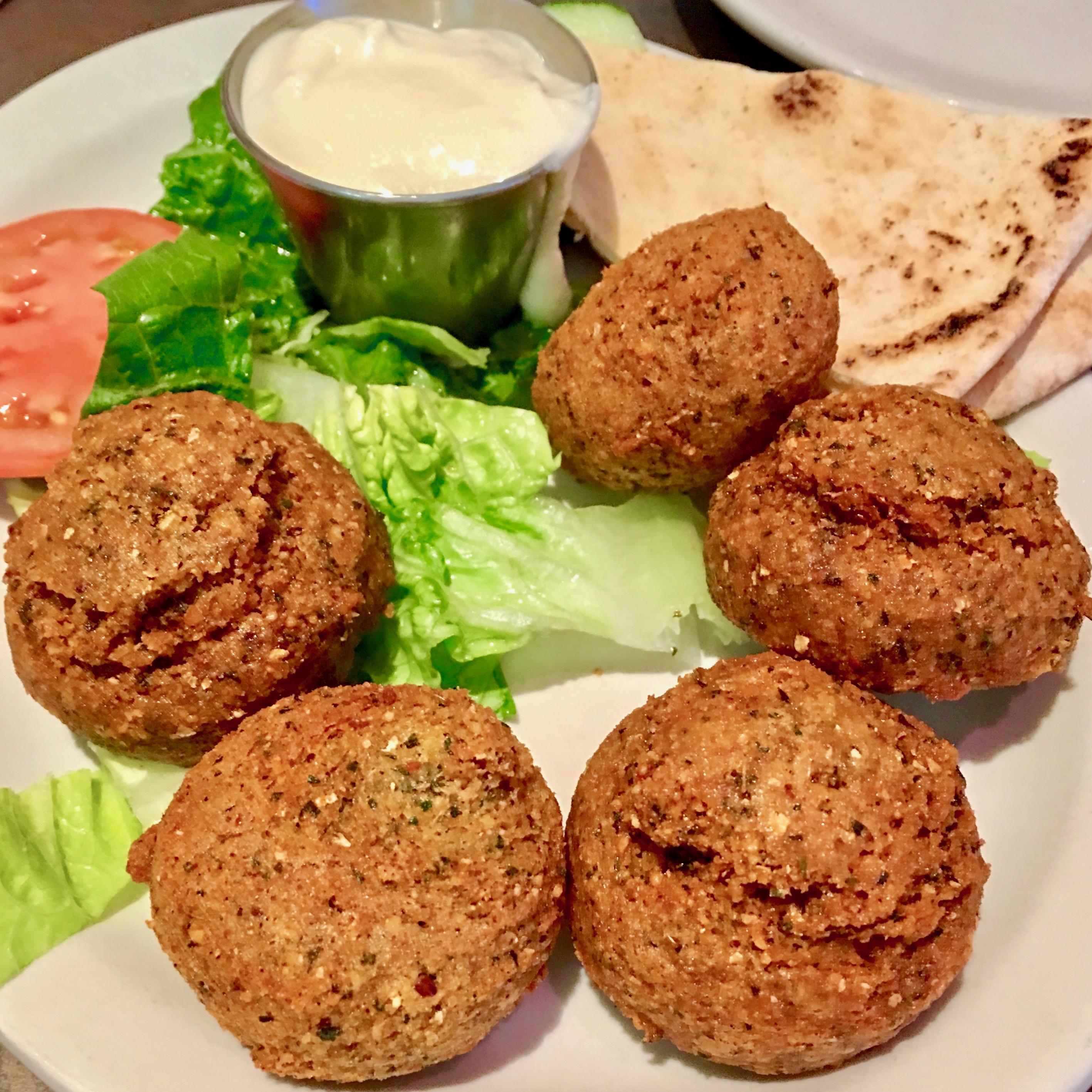 I ended up running into a friend that afternoon and we decided to grab lunch, going to Sinbad’s. Mediterranean food can be quite vegan friendly, and this place was no exception. We got the falafel for an appetiser ($7.75), and because I love falafel so much I also went for the falafel wrap for my main meal ($7.50) with falafel patties, tomatoes, lettuce, and banana peppers. It was easily made vegan by substituting the tahini yogurt dressing with hummus. The falafel patties were crispy on the outside and had great flavour.