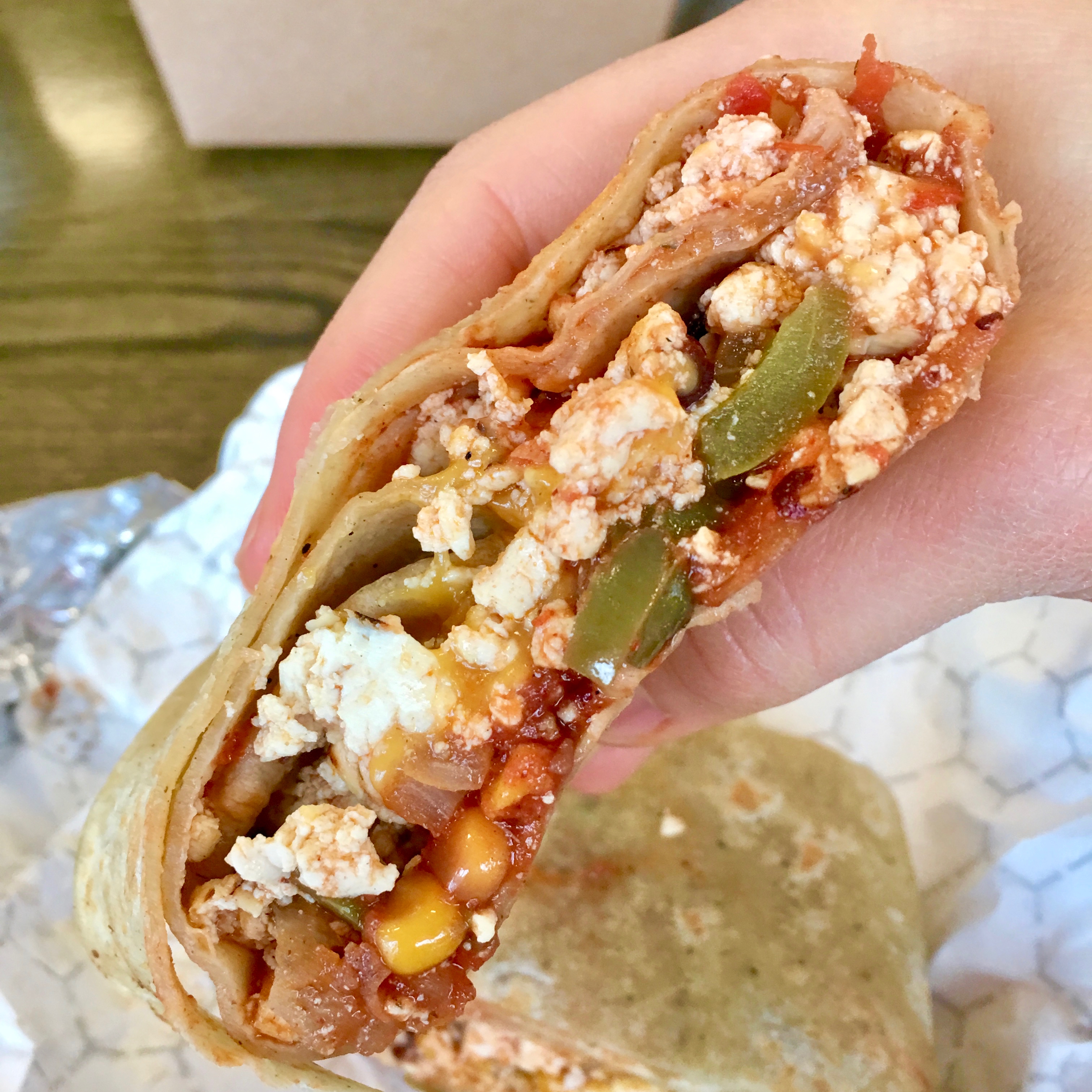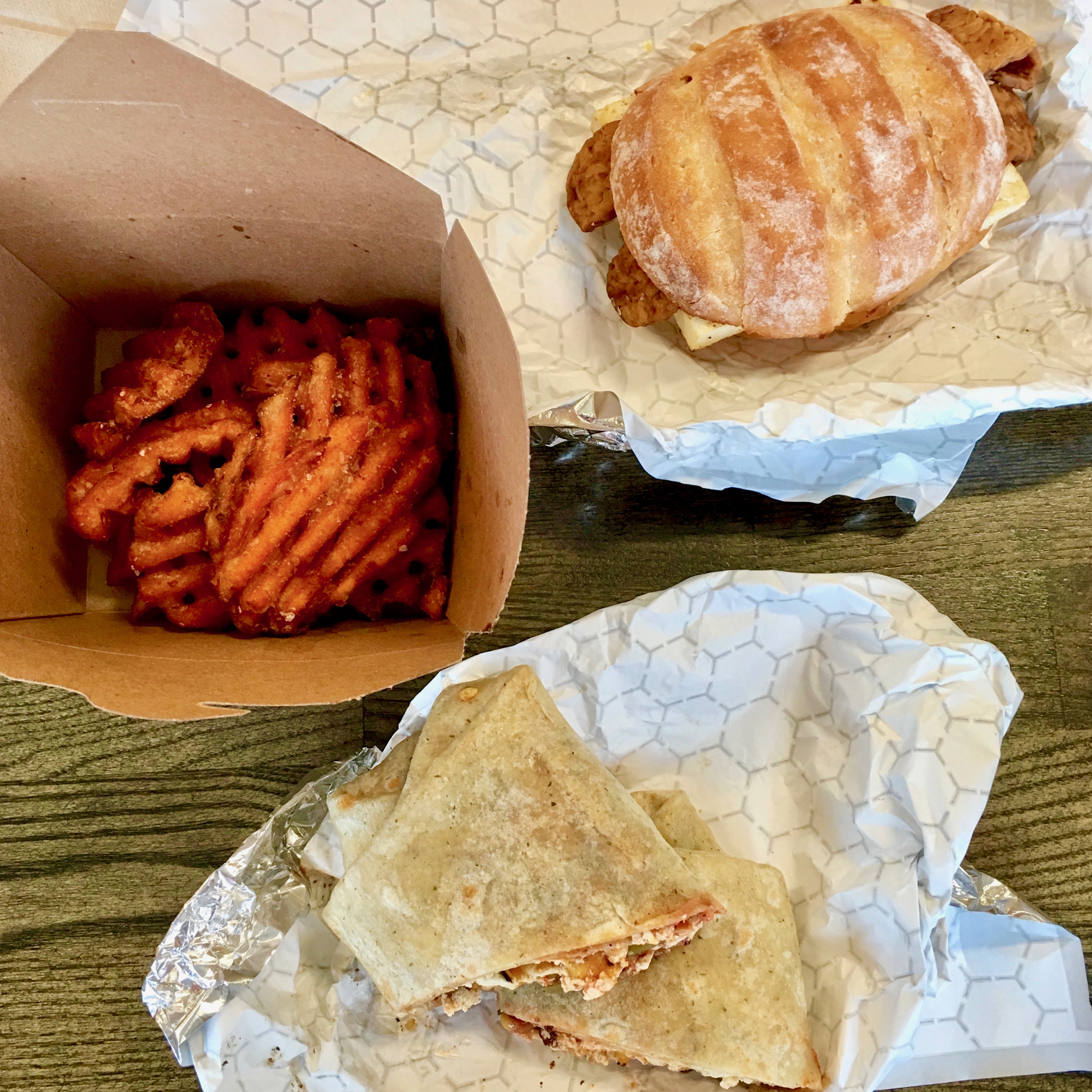 For dinner that evening Rachel took me to Hart’s Local Grocer. I’m so sad that Hart’s actually closed down this month. But I am glad that I was able to get in a visit before it did! Rachel had raved about their Vegan Breakfast Wrap ($6.25), filled with tofu, veggies, and an amazing sauce. It was all she had promised it would be! We also shared sweet potato waffle fries, and the meal was filling and really hit the spot on a cold winter’s evening. Good ol’ comfort food.