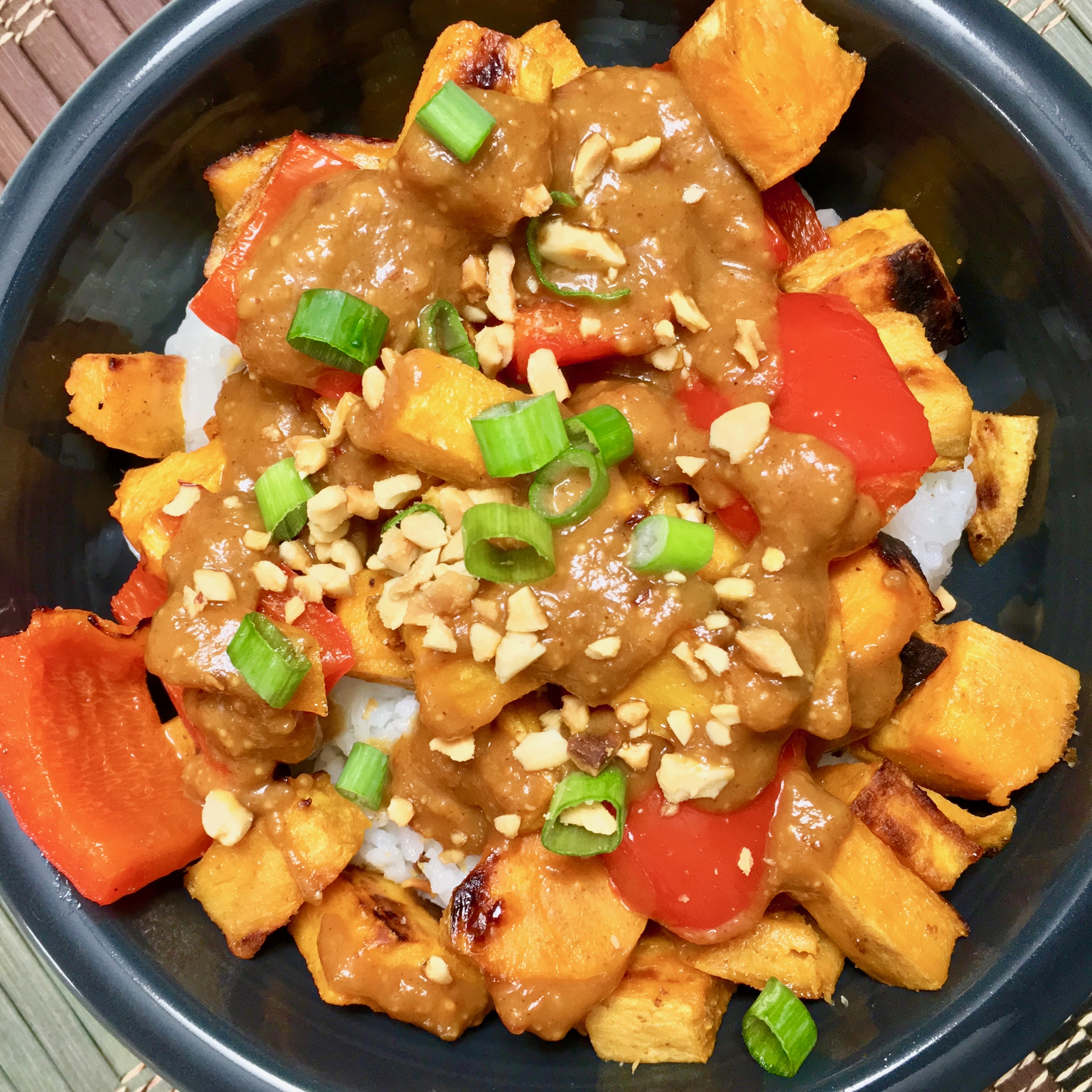 While snacking, we began cooking. The main course was a recipe by Cookie and Kate: Spicy Thai Peanut Sauce over Roasted Sweet Potatoes and Rice. This recipe is definitely a keeper! It’s quite simple, and easily made in larger batches for meal prep – we had leftovers the next day for dinner.